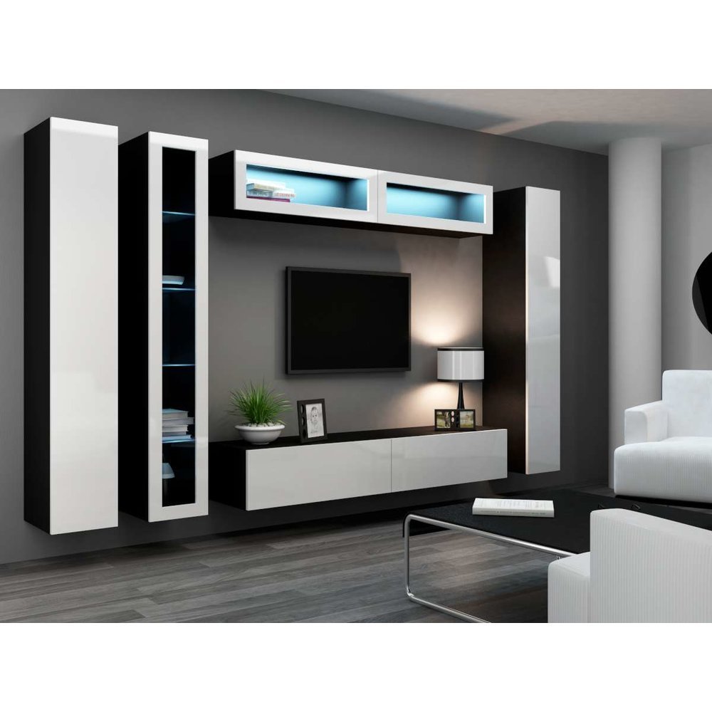 Justhome Set Vago Vi Wohnwand Anbauwand Schrankwand Schwarz Weiss