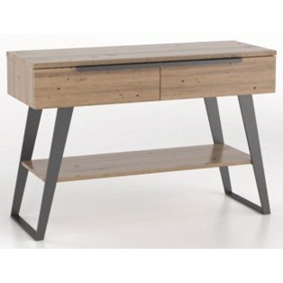 The 866 Console Is Made Of Solid Wood With An Industrial Look