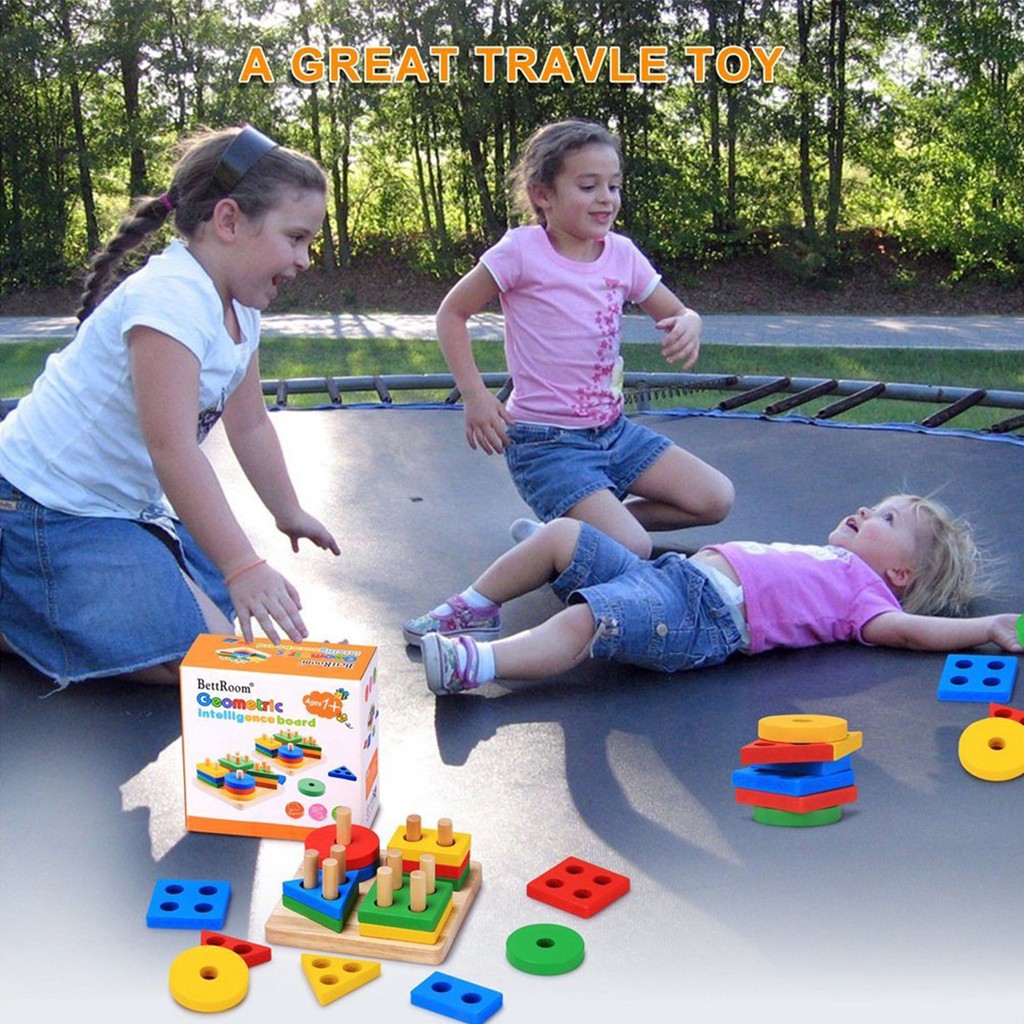 Baby Kids Wooden Geometric Building Blocks Sorting Montessori Puzzle Boys Toys