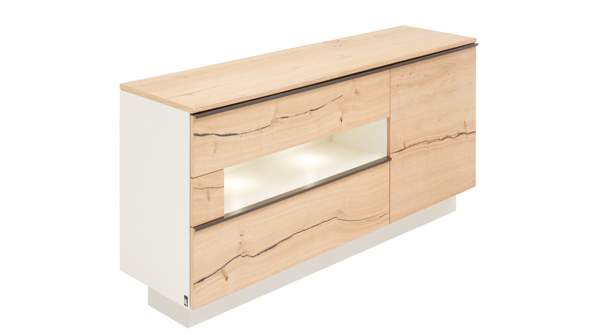 Interliving Wohnzimmer Serie 2103 Sideboard 560711 Mit Beleuchtung Mattweisser Lack Asteiche Eine Tur Zwei Schubladen