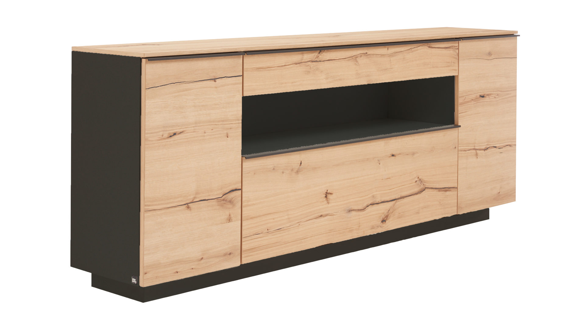 Interliving Wohnzimmer Serie 2103 Sideboard Schieferschwarzer Lack Asteiche Zwei Turen Zwei Schubladen