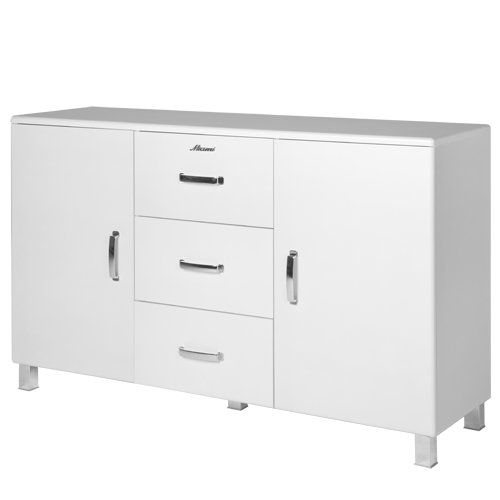 Kleine Anrichte Weiss Hochglanz 2 Turen 3 Schubladen