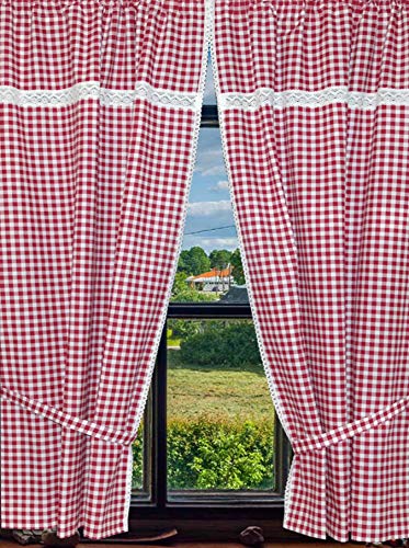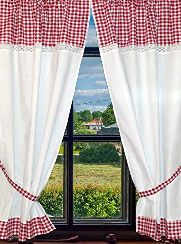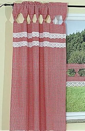 Leinenshop24 Landhaus Gardinen Set 2 St 2 Bindebander Rot Weiss Kariert Mit Spitze 140x80cm Gesamt 160cm Breit 100 Baumwolle Tina