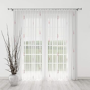 Details Zu 2er 3er 5er Set Gardine Vorhang Faden Schlaufen Weiss Rot Muster Pailletten