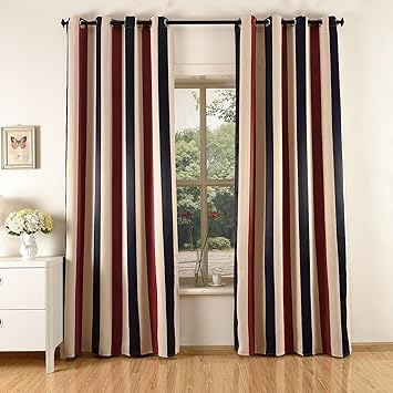 Vorhang Gardine Blickdicht Mit Osen Verdunkelungsvorhang Dekoschal Weiss Rot Blau Streifen Muster Deko Fur Wohnzimmer Schlafzimmer 140x245cm 2er