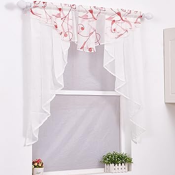Voile Kleinfenster Gardinen Weiss Vorhang Fenstergardine Scheibengardine Mit Falten Rot Bxh 100x100cm