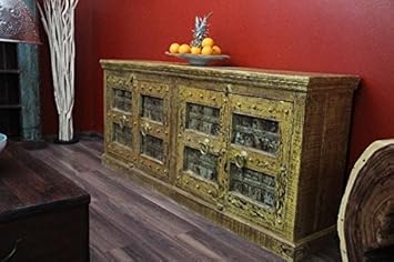 Amazon De Highboard Sideboard Massivholz Antik Ocker