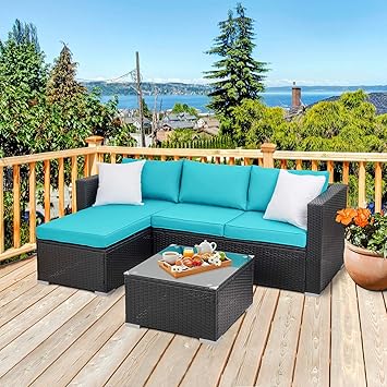 Walsunny Outdoor Rattan Sectional Sofa Patio Wicker Furniture Set Blue