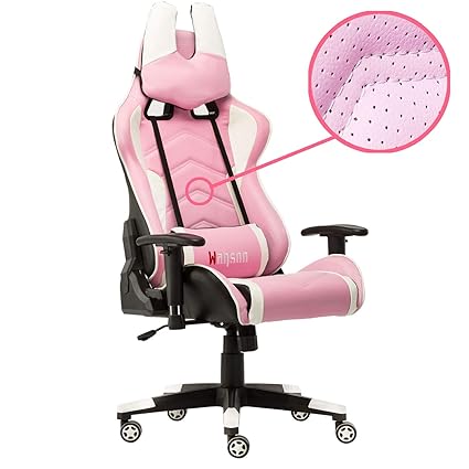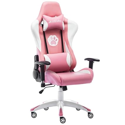Homall Gaming Chair Racing Office Chair High Back Computer Desk Chair Leather Executive Adjustable Swivel Chair With Headrest And Lumbar Support Pink