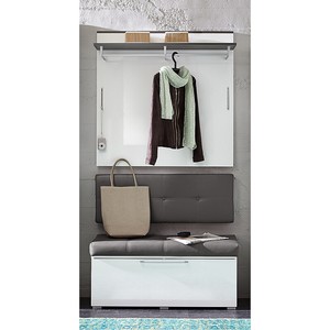 Garderobe Shandor Weiss Hochglanz Grau 120x195 Sitzbank