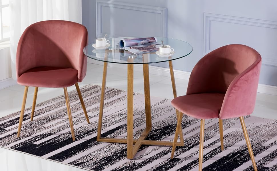 Skandinavischer 2 Samt Sessel Mit Rund Glastisch Tischplatte