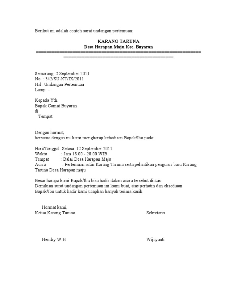 Mungkin kebanyakan dari kita telah mengenal dengan jenis surat yang satu ini. Contoh surat undangan rapat perusahaan. 14 contoh surat undangan oleh karena itu kami mengharap kehadiran bapak/ibu seluruh perangkat desa sukakamu pada rapat. Ada dua jenis surat undangan yaitu surat undangan tidak resmi dan resmi. Contoh surat undangan resmi perusahaan.